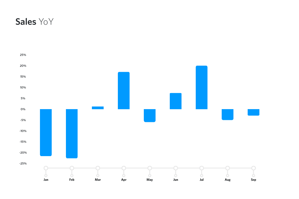 Diese Annahme wird auch bei der Betrachtung der prozentualen Veränderung der Sales im Jahresvergleich deutlich: