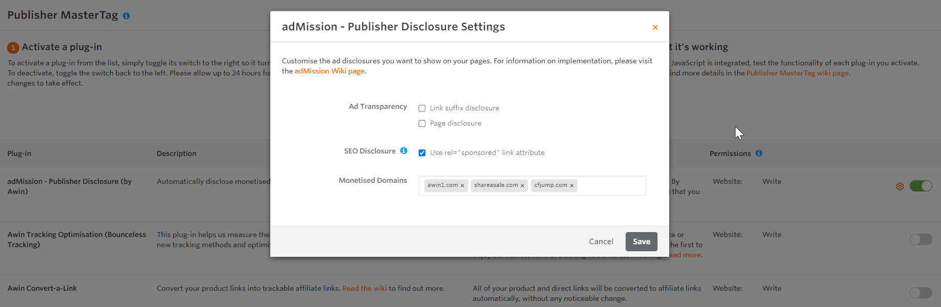 adMission is Awins plug-and-play openbaarmakingstool voor publishers. De tool kan gemakkelijk in de Publisher MasterTag worden geactiveerd. adMission toont automatisch disclosure statements voor al je affiliate bezoekersverkeer en commerciële uitingen en kan worden gebruikt om bestaande links op je site te upgraden.