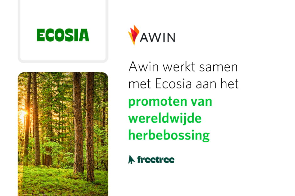 Ecosia zal met financiering van Awin een boom planten voor iedere verkoop die door een Awin-adverteerder wordt gerealiseerd via de onlangs door Ecosia gelanceerde browserextensie freetree. Het uiteindelijke doel is om 100.000 bomen aan te planten. Het strategische partnerschap stelt zowel Awin als Ecosia in staat om milieuvraagstukken onder de aandacht te brengen, duurzamere merk- en consumentenpraktijken te promoten en Ecosia te ondersteunen bij het intensiveren van de samenwerking met Awin-adverteerders in de Britse, Amerikaanse, Duitse en Franse markten.