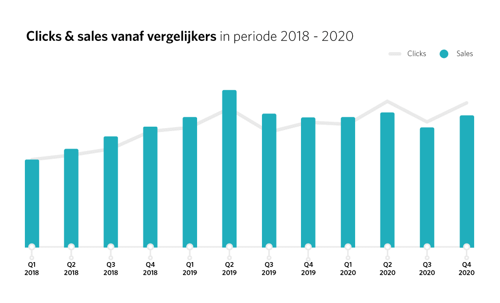 We zien dan ook het afgelopen jaar een toename in verkeer vanaf de top vergelijk-publishers in vergelijking met het jaar voor de lockdown (+8% in clicks YoY).