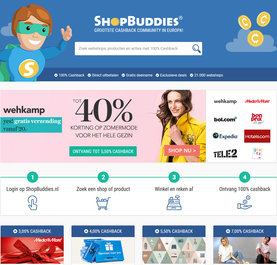 The platform is an online shop and cashback guide that helps visitors find the product or service they are looking for – like clothing and shoes, but also electronics and holidays – and purchase it online using cashback. Over 8 million members buy products online using cashback through OrangeBuddies Media’s cashback websites and save money on millions of products. And with the expansion of the amount of web shops to 21,000, the possibilities to save cashback with online shopping has expanded considerably.