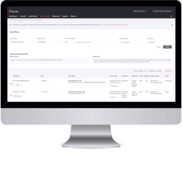 Des conditions de configuration sont requises pour utiliser cette fonctionnalité. Si vous souhaitez en savoir plus sur l'utilisation de cet outil sur le réseau Awin, veuillez vous renseigner auprès de votre Account Manager.