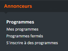 - « S’inscrire à des programmes » (les programmes qui n’ont pas encore été rejoints par l’éditeur).