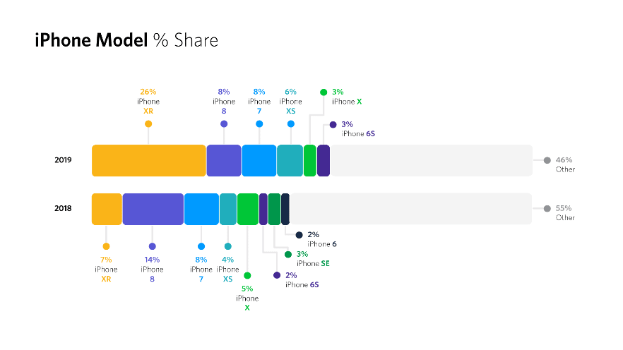 O evento que marcou o abandono da confusa nomenclatura X, XS e XR que, para a grande tristeza do time de marketing da Apple, é comumente referida como a letra X ao invés de “dez”. Embora possa ter parecido que a nomenclatura é um presente para consumidores confusos, nossos dados sugerem que a Apple está redefinindo sua estratégia em resposta à demanda dos consumidores. Tim Cook mencionou que o iPhone XR foi o iPhone mais vendido de todos os tempos. Vamos examinar como a tendência realmente era.