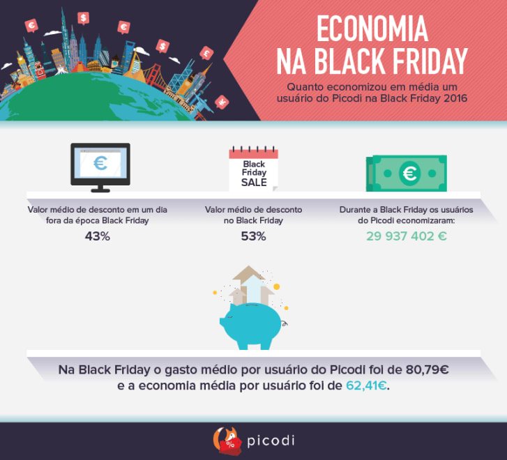 De acordo com o Picodi.com, na Black Friday 2016, o Brasil chegou a praticar taxas de até 90% de desconto, mas o valor médio praticado foi de 56%. Em países como Ucrânia, Alemanha e Eslováquia, a média de descontos chegou a 60%.