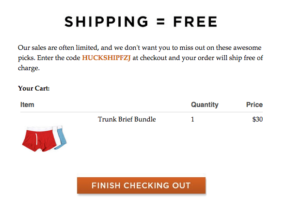 Remember, when making an offer, how you phrase the discount is important. Free shipping is a great starting point. You should also consider including authentic urgency statements — “only three left in stock,” “limited time offer on products” etc. This is a great example: