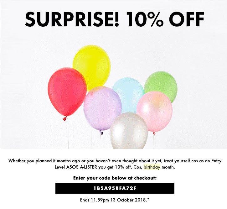Focusing on broader events, like Black Friday promo code ideas for example, might yield decent results, but surprising customers with something personalized is far more enticing. One of the most common forms of a ‘surprise discount’ is the ‘birthday’ promo. Providing shoppers with a discount code on their birthday is not as new as it was a few years ago, but it’s still a way to grab attention and make loyal customers feel valued. Birthday promotion emails have an open rate 2.5x higher than standard email marketing promotions.