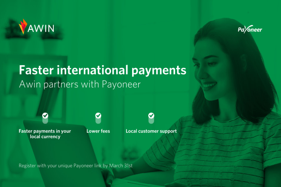 If you’re a publisher that receives international payments (as an International Wire Transfer (IWT), then you need to register with Payoneer by March 31, 2021 using a unique registration link provided by Awin.