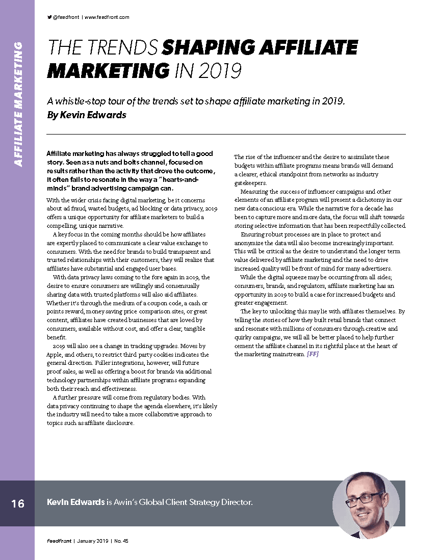 The Trends Shaping Affiliate Marketing in 2019: FeedFront article by Kevin Edwards