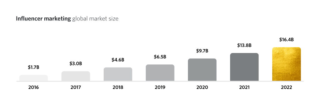 Influencer marketing has exploded in the last decade and is estimated to be worth $16.4bn in 2022. The industry has been fueled by the rise in mobile usage and social media apps, and an unquenching thirst for authentic and entertaining content by online audiences.