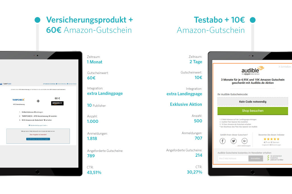 Damit Du einen besseren Eindruck von dem Incentive Tool bekommst, haben wir hier zwei erfolgreich durchgeführte Beispiel-Kampagnen für Dich: