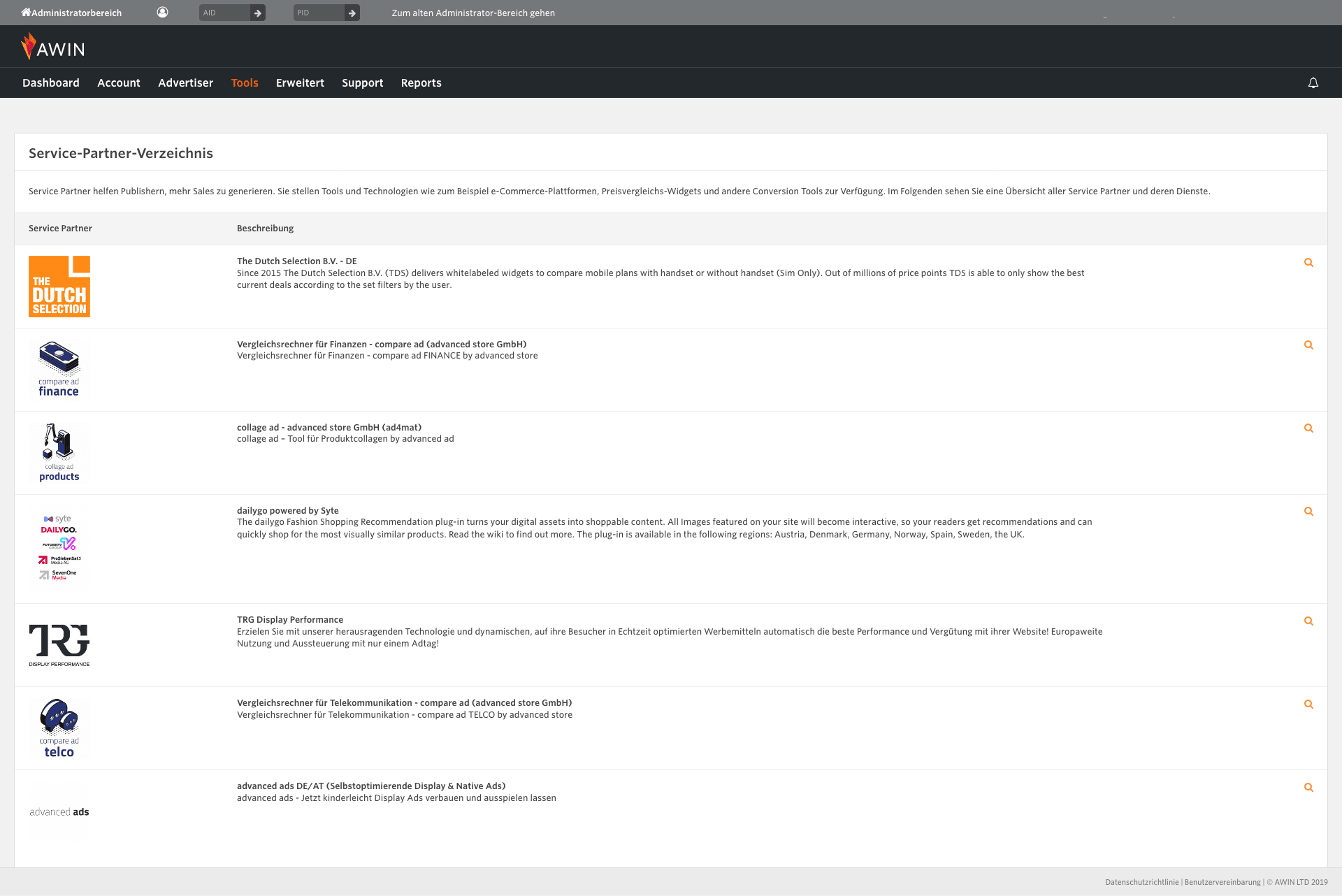 Service-Partner ist ein neues Konzept, das Awin Anfang des Jahres auf der Awin Plattform eingeführt hat. Jeder Publisher, der mit Advertisern zusammenarbeitet und Tools oder Technologien für andere Publisher bereitstellt, kann ein Service-Partner werden. Das sind beispielsweise Anbieter von Display Lösungen, wie TRG Display Performance und advanced ads.