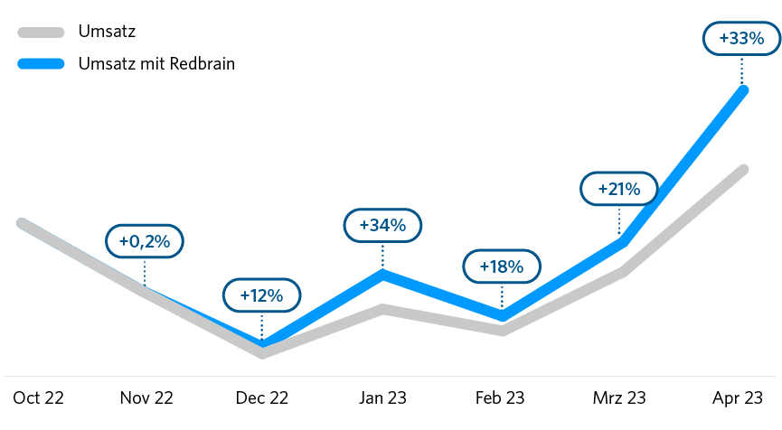 Wenige Monate später wagte sich Redbrain neben Google auch auf das Bing-Spielfeld, um die Reichweite weiter auszubauen. Die ersten Früchte der umfassenden Kampagne sind vielversprechend und belegen den Erfolg der Partnerschaft: