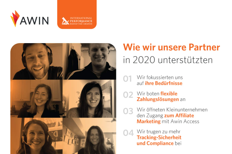 Mit den International Performance Marketing Awards werden die herausragendsten Leistungen im Performance und Affiliate Marketing ausgezeichnet. Jedes Jahr fiebern wir bei der Verkündung mit. Doch dieses Jahr würden wir uns aufgrund der Herausforderungen, die 2020 mit sich gebracht hat, über eine Anerkennung unserer Leistungen besonders freuen.