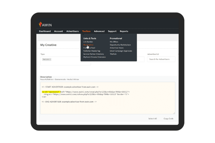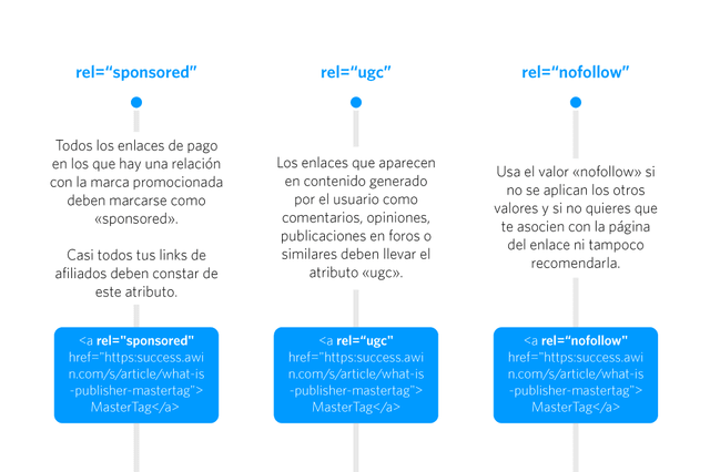 Las herramientas de Awin de más arriba te ayudarán a implementar con éxito los atributos de los enlaces.