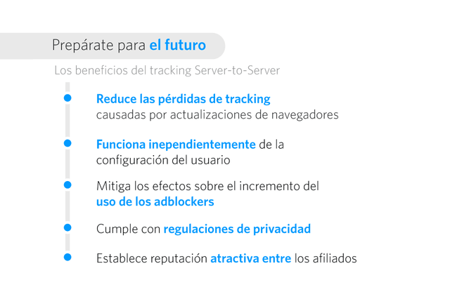 La evolución técnica hacia un nivel mayor de privacidad y protección del usuario no va a detenerse ni reducirse. El tracking servidor a servidor es el tracking online del futuro. Nuestra recomendación es adaptar el tracking para ser resilientes al aumento de restricciones y cambios de proveedores de navegador.