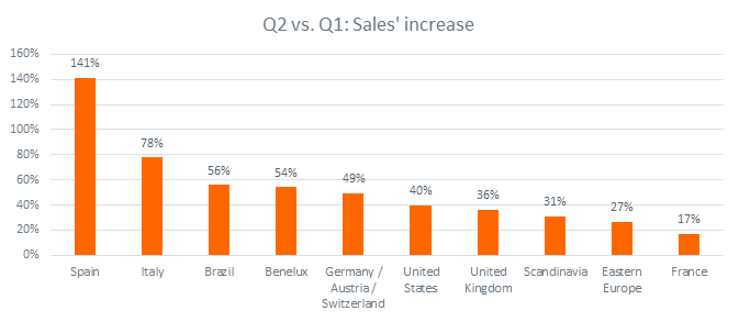La red global Awin ha sido testigo de un crecimiento espectacular en muchos de las verticales en los que opera, con el comercio retail en general viendo un aumento del 41% de las ventas en el segundo trimestre en comparación con los primeros tres meses del año. El rendimiento varió drásticamente entre las regiones, pero todos los mercados experimentaron por lo menos aumentos de dos dígitos, y España superó con creces al resto de regiones: