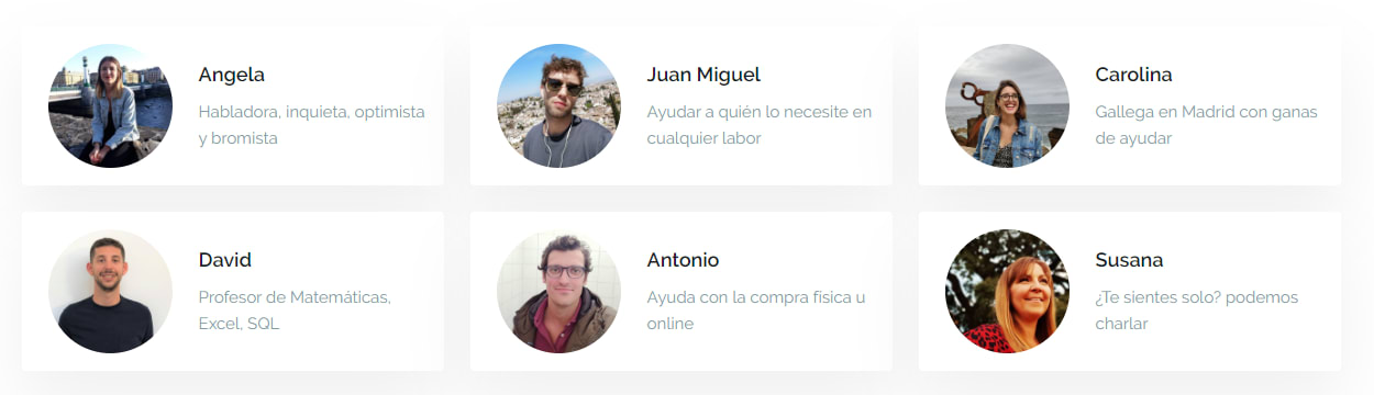 La plataforma segmenta a los voluntarios por zona geográfica, por lo que la persona que solicite ayuda podrá buscar personas en su ciudad para asistencias que requieren cercanía física como hacer la compra o pasear una mascota.