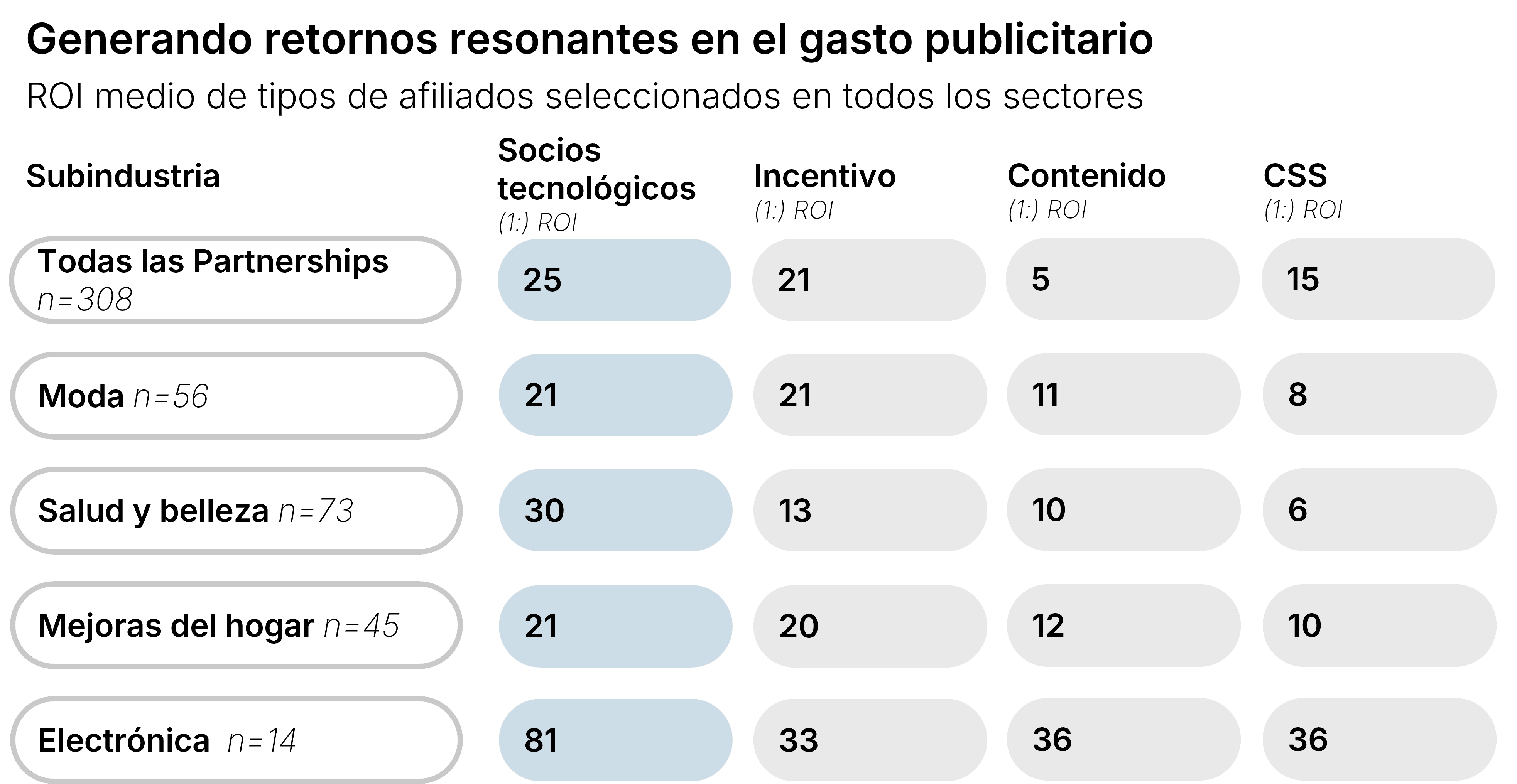 ¿Cómo se compara el rendimiento de los partners tecnológicos con el de otros tipos de afiliados?