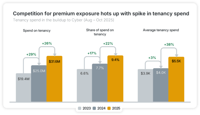 Cyber Weekend 2025 highlights a retail landscape in flux. While overall sales dipped slightly, early-November activity, rising tenancies, and new strategies provide positive signs that advertisers are experimenting with new ways to maximize their sales periods while protecting margins.