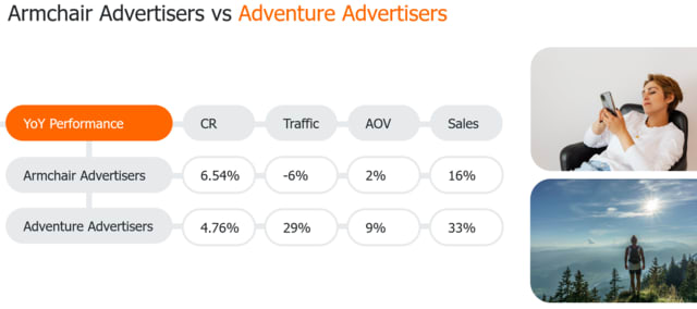 However, when it came to every other valuable metric, traffic volume, AOVs and sales, adventure advertisers won out. Significantly so too.