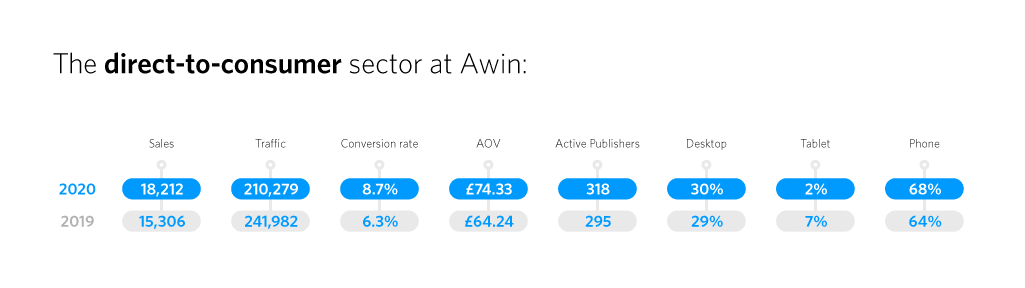 With the pandemic prompting brands such as Heniz with their ‘Heniz Home’ option to make a shift to a direct-to-consumer (DTC) approach, we saw many retailers sell out on essential items prompting customers to go direct. This was no different in the beauty sector with DTC beauty brand sales increasing 19%, despite a 13% decrease in traffic. Thanks to a 2.4% increase in conversion rate, driven by customers searching directly for the products they need and willing to go right to the source.