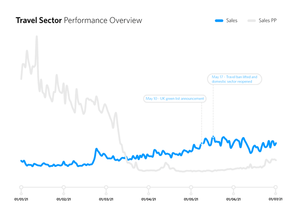The last 18 months has been disruptive and impactful to businesses across a magnitude of sectors, but none more so than travel. The sight of grounded planes, hotel quarantine centers and ghostly cruise ships in the English channel have become all too familiar. However, finally there is cause for optimism. Year to date bookings within the UK travel sector peaked on 17th May, the date that international travel restrictions were lifted and the domestic accommodation sector re-opened. This increase in demand also coincides with the first green list announcement from the week prior, which included popular mass market holiday destination, Portugal. Much was made of the travel ban lifting, with many expecting an immediate surge in international travel bookings. Instead, what we saw was quite underwhelming, with demand seemingly flatlining.