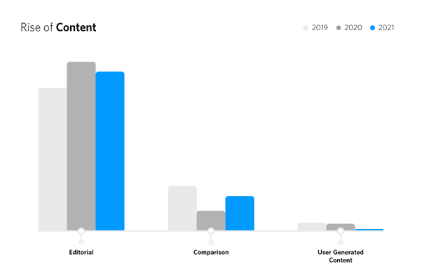 Within the affiliate channel we’ve seen that the demand from customers to have better clarity on booking details has resulted in an increase in the number of sales from content publishers. Content accounts for 24% of all 2021 bookings made, with the biggest growth coming from Editorial sites. Pre-pandemic, editorial accounted for 73% of all content bookings, with the remainder made up from comparison and user generated content publishers. Since the pandemic, that number has increased to 82% for sales made in the first half of this year.