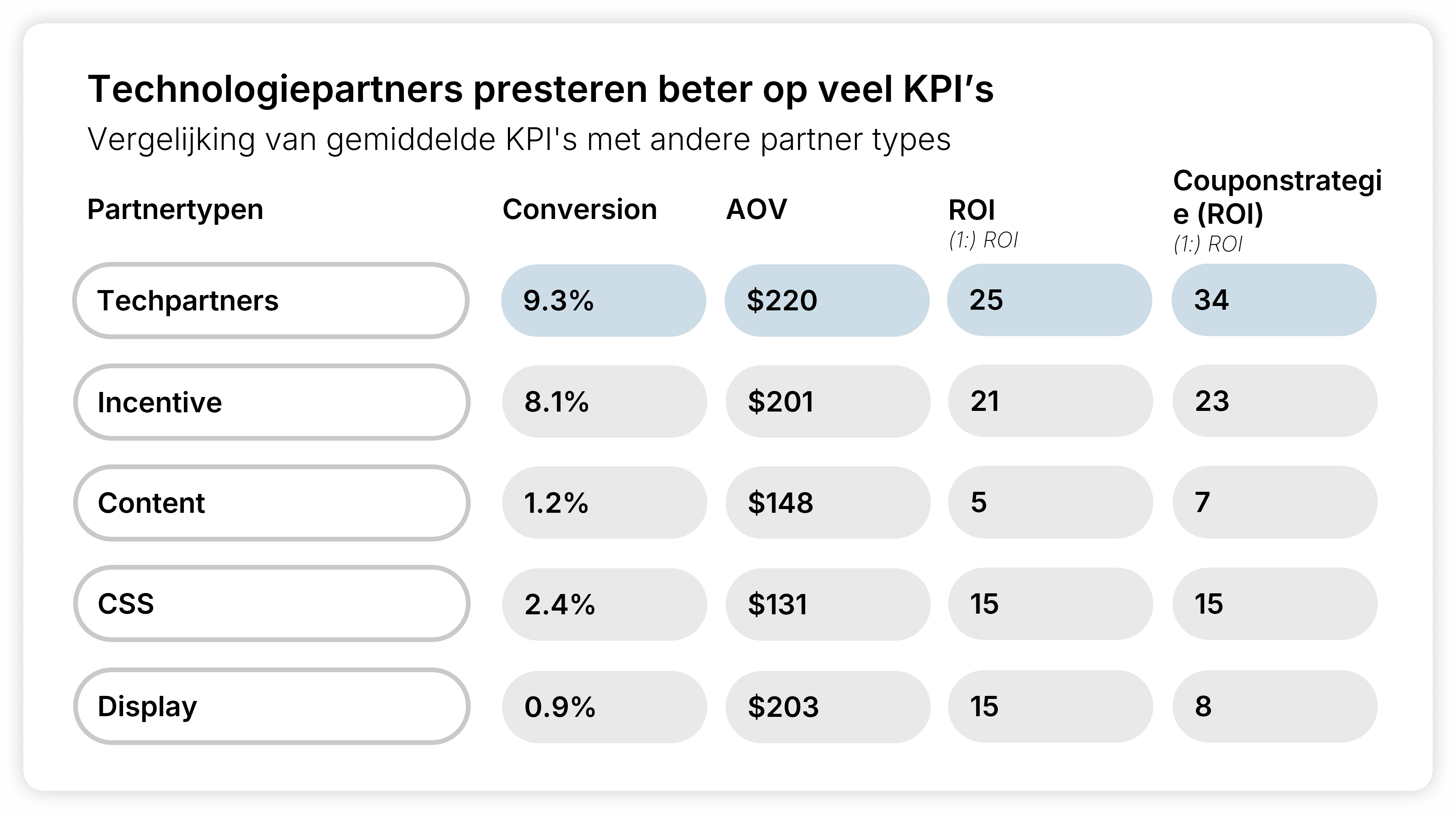 Hoe doen technologiepartners het in vergelijking met andere soorten affiliates?
