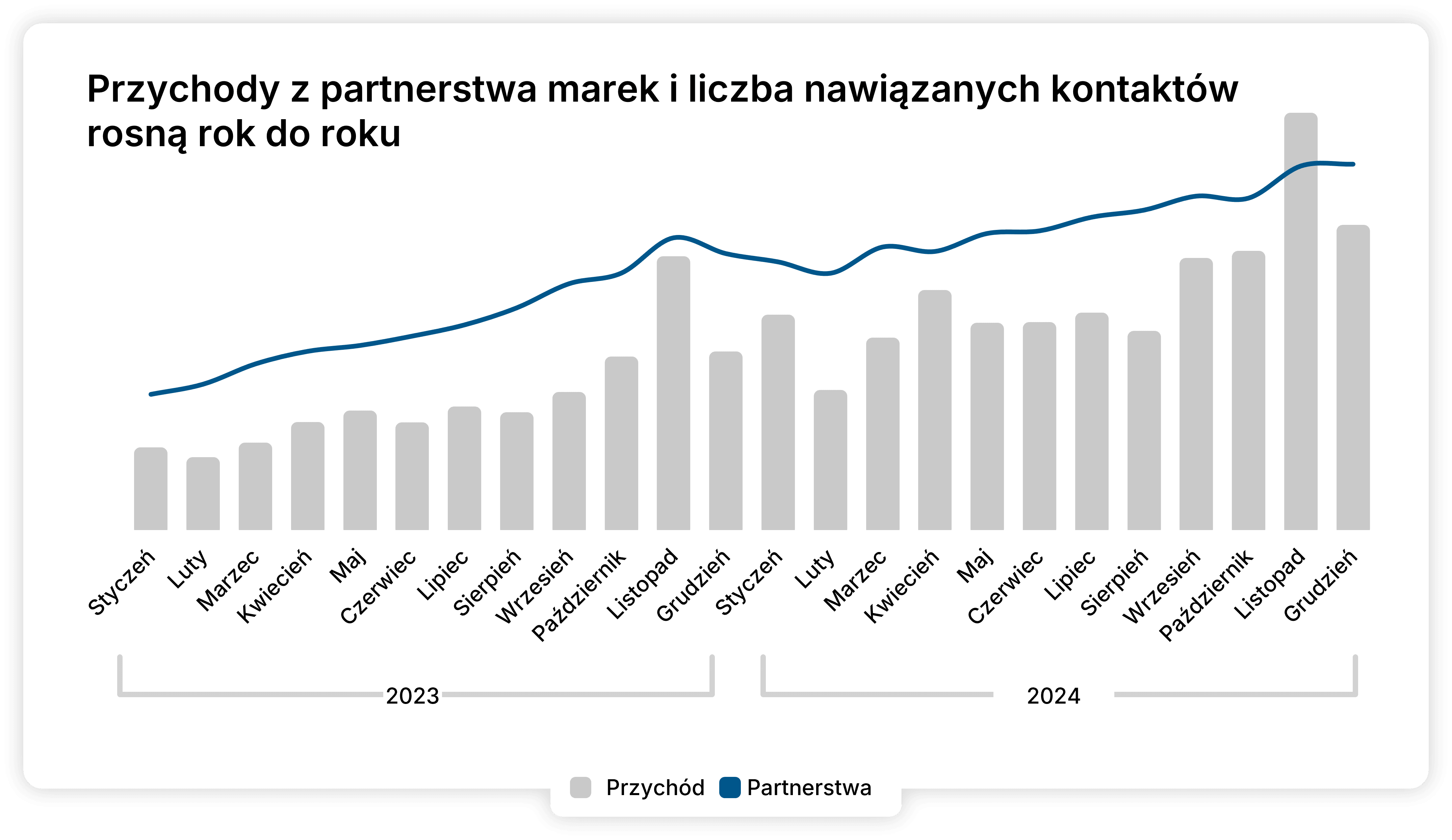 Te imponujące liczby pomogły uczynić partnerstwa marek najszybciej rozwijającym się typem partnera w Awin globalnie w 2024 roku, dzięki wzrostowi sprzedaży o +93% rok do roku