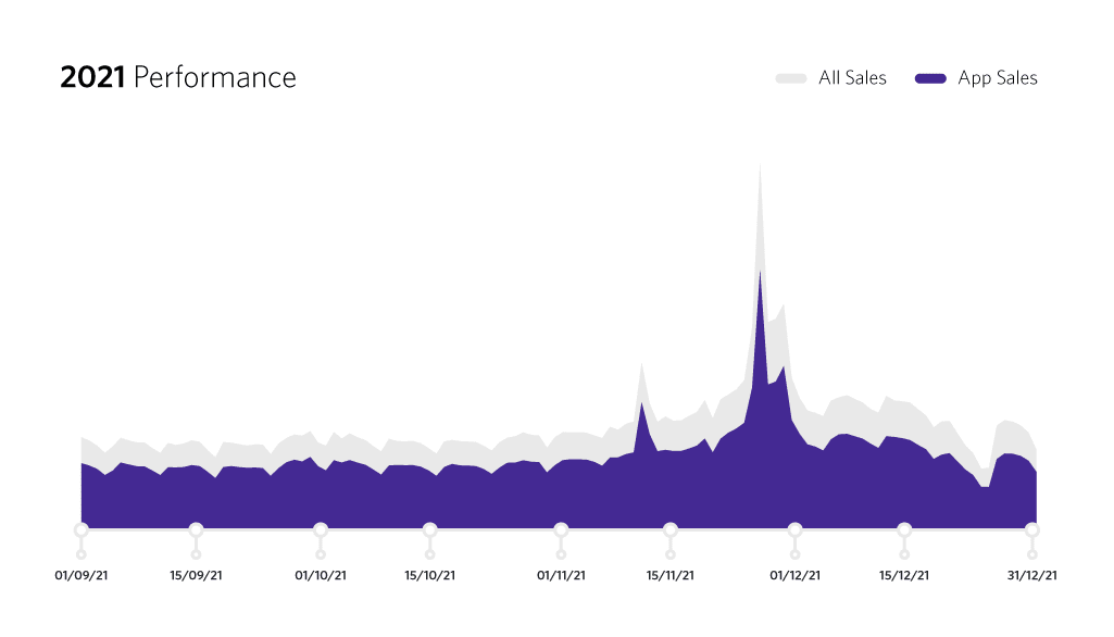 Choć to pozornie niewielka grupa reklamodawców (w porównaniu z pełnym portfolio reklamodawców na platformie Awin), uzyskała ona w 2021 roku łącznie o 155% większą sprzedaż w aplikacji w sieci w porównaniu do roku 2020. Już we wrześniu 2021 roku statystyki śledzenia w aplikacjach w sieci przekroczyły wyniki z całego roku 2020, a najlepsze miesiące 2021 roku miały dopiero nadejść.