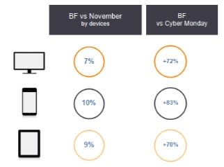 Niezależnie od urządzenia, po które sięgali polscy klienci w 2016 roku, Black Friday wygenerował zdecydowanie więcej transakcji, niż Cyber Monday. Największa przewaga dotyczyła jednak użytkowników smartfonów, wynosząc 83%.