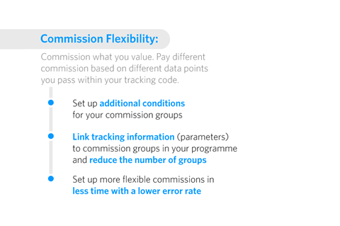 Det är mycket enkelt att använda Provisionsflexibilitet. När du har aktiverat funktionen för ditt program (prata med din kontoadministratör för att aktivera den) kan du betala provision för alla parametrar du väljer i din spårningskod.