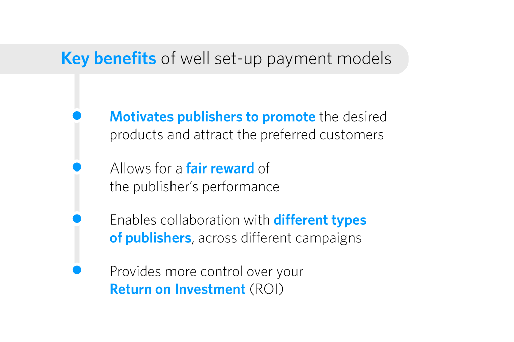Awins provisionsverktyg ger dig ett stort antal betalningsalternativ så att du kan vara flexibel och samarbeta med olika typer av publicister i olika kampanjer samtidigt som du har total kontroll över ditt ROI-värde.