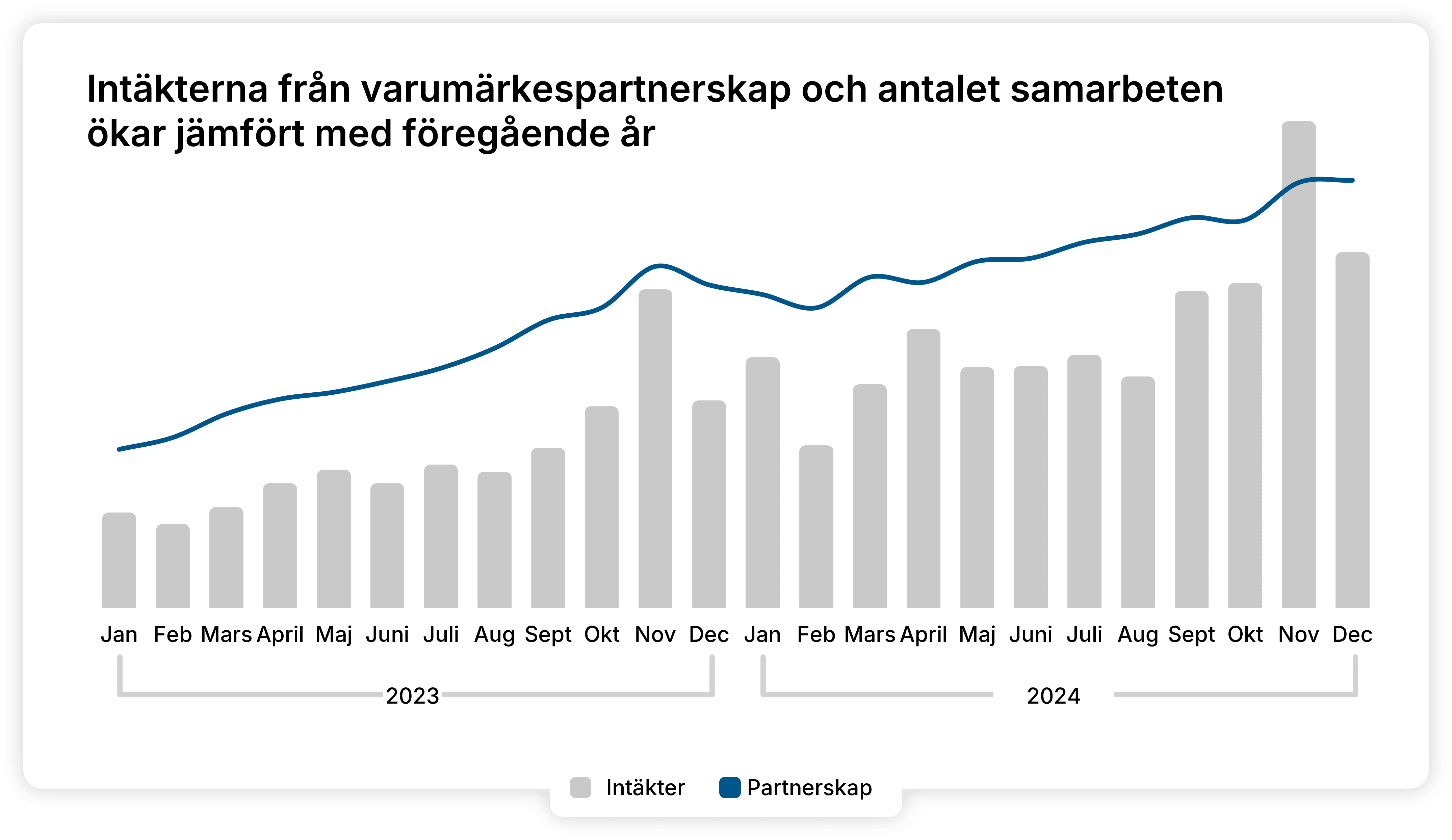 Dessa höga siffror bidrog till att göra varumärkespartnerskap till den snabbast växande partnertypen på Awin globalt under 2024, med en försäljningsökning på 93 % jämfört med föregående år.