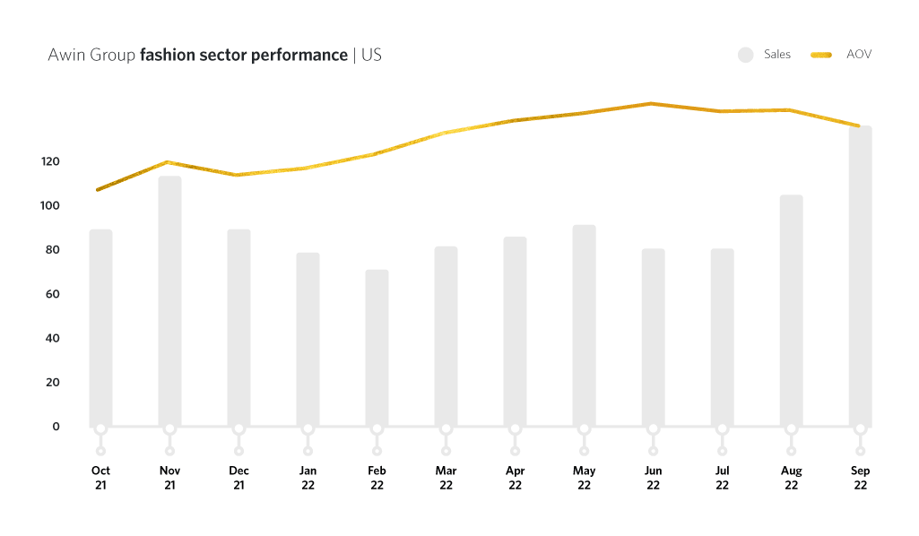 The fashion sector tells an interesting tale as we see sales decrease steadily, in line with rising inflation across 2022 and with an average quarterly decrease of -4% from Q2 to Q3. However, AOV continues to grow, with an average quarterly increase of 17% and with further growth forecasted for the rest of the year.